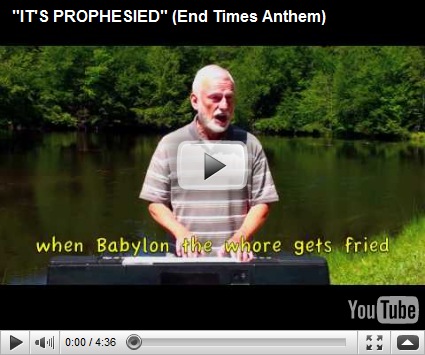 I apologize for this one. I cannot resist posting this gem. I’m not laughing at this simply because I do not believe in a pretribulation rapture. I’m laughing at the lyrics and the way the guy sings things like “burn in hell” in a high almost happy voice. Furthermore, calling Obama the leopard-king and other amazing lines that you’ll have to see for yourself. But perhaps what makes me laugh more than anything is the setting. Seriously?!?! A dude playing a piano by a lake and switching the camera angle with every stanza.